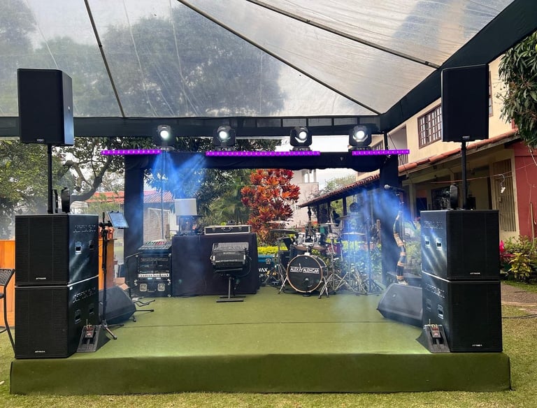 Nossos serviços incluem DJs, palcos e transmissão simultânea, adaptando-se às suas necessidades específicas para um evento inesquecível.